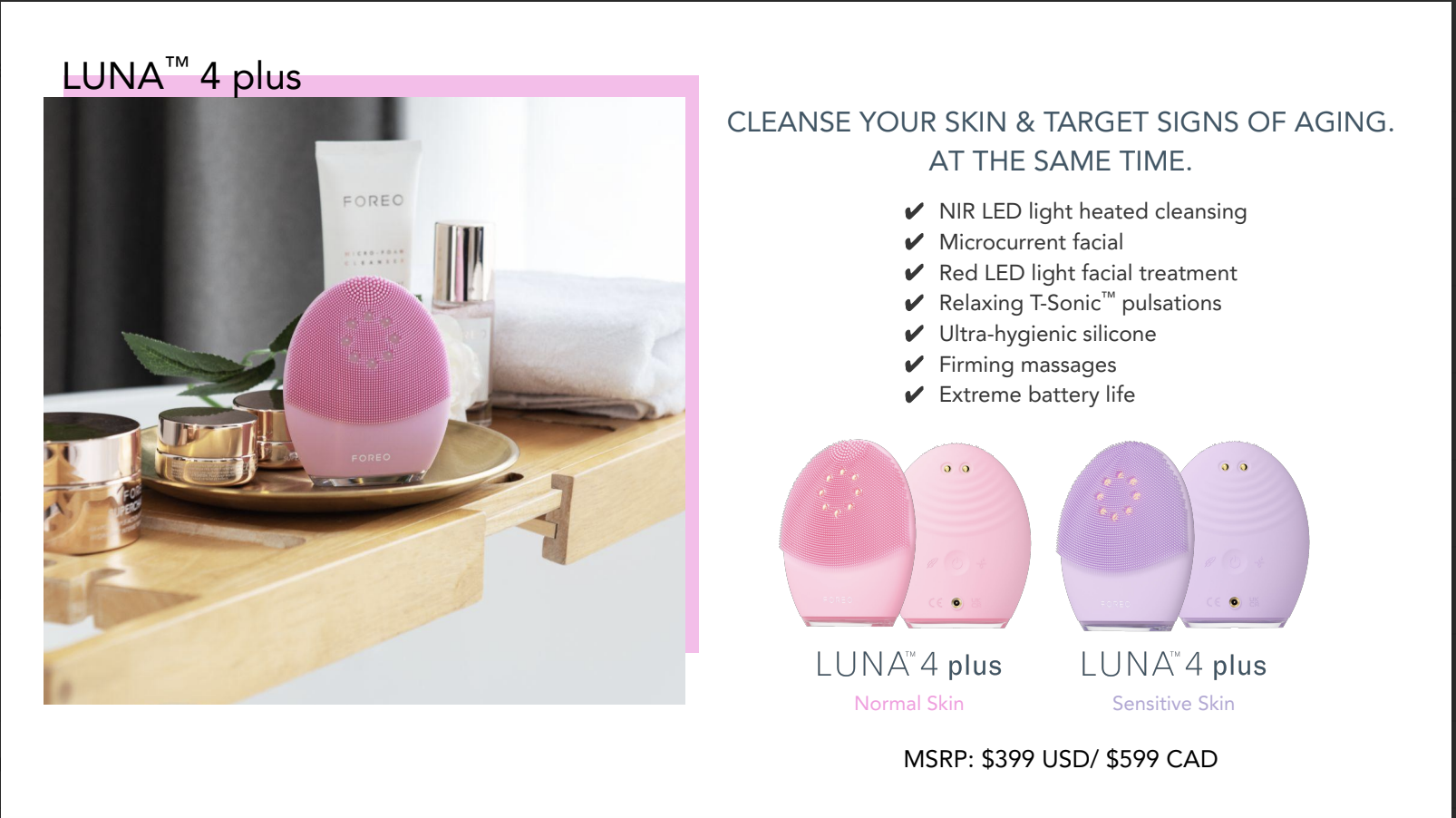 LUNA™ 4 plus offers up to 100 uses per USB charge, low-battery indicator light, travel lock, and 100% waterproof sleek Swedish design for hassle-free premium skincare at-home and glowing, flawless results every time.